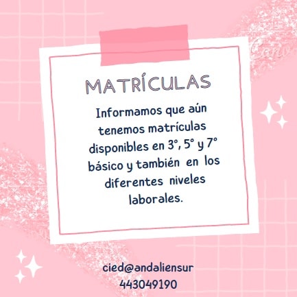 Tenemos matrículas disponibles en diferentes niveles!Pedimos difundir la información!